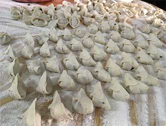 上午11時許,“高手們”便來到餐廳開始準備工作。一切就緒后,大家分別“塑造”出各類帶有家鄉風格的餃子。每位同事包出的餃子