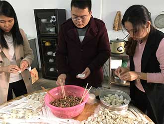 中午,全體職工一邊吃著熱氣騰騰的餃子一邊聊著天,氣氛異常歡快活躍,我們在這個溫暖的大家庭中一起成長,我們是相親相愛的一